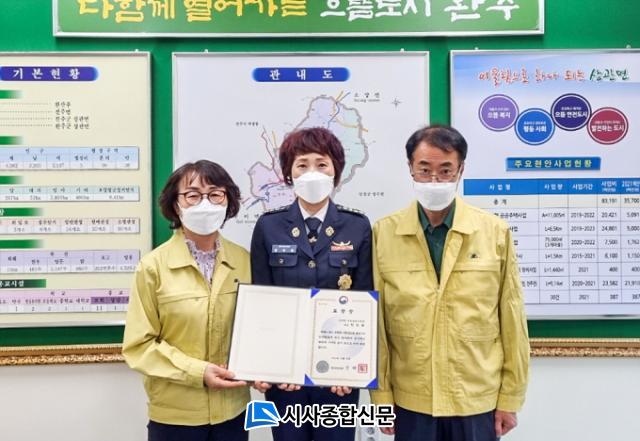 [½Ã»çÁ¾ÇսŹ® = ¿À½ÂÅà ±âÀÚ] ÇѼ÷È ¿ÏÁÖ¼Ò¹æ¼ »ó°ü¸é ¿©¼ºÀÇ¿ë¼Ò¹æ´ëÀåÀÌ Äڷγª19¹æ¿ªÈ°µ¿°ú Àç³ ¹æÁö¿¡ Çå½Å ºÀ»çÇÑ °ø·Î¸¦ ÀÎÁ¤¹Þ¾Æ ÇàÁ¤¾ÈÀüºÎÀå°ü ǥâÀ» ¹Þ¾Ò´Ù.