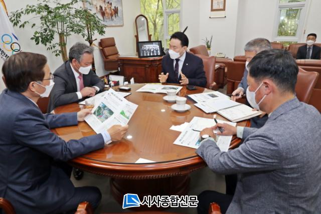 Á¤Á¾¼ø ÀåÈﱺ¼ö´Â À̱âÈï ´ëÇÑüÀ°È¸Àå°ú Á¶¿ë¸¸ ´ëÇÑüÀ°È¸»ç¹«ÃÑÀåÀ» ¸é´ãÇÏ°í ´ëÇѹα¹Ã¼À°ÀÎÀç°³¹ß¿ø 2´Ü°è »ç¾÷ÀÇ Çʿ伺 ¹× ÀåÈï ¼ö¿±×¸°µµ½Ã »ç¾÷ ÃßÁø µî¿¡ °üÇÏ¿© ¼³¸íÇß´Ù.