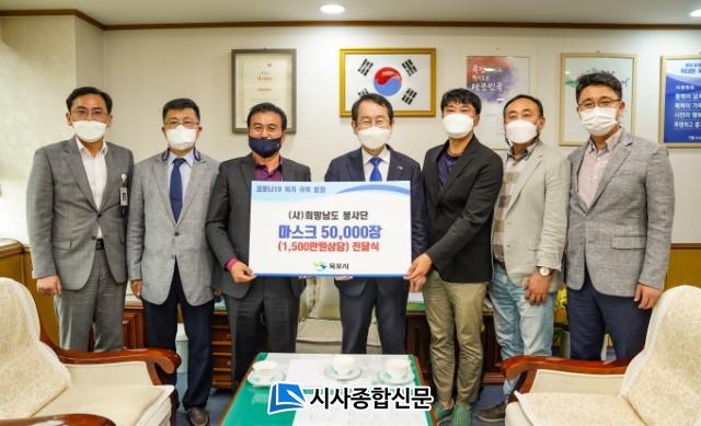 [½Ã»çÁ¾ÇսŹ® = ¿À½ÂÅà ±âÀÚ] »ç´Ü¹ýÀÎ Èñ¸Á³²µµºÀ»ç´Ü(ȸÀå ¹Úº´Èñ)ÀÌ 4ÀÏ Äڷγª19 ±Øº¹¿¡ µ¿ÂüÇϰíÀÚ ¸ñÆ÷½Ã¿¡ ¸¶½ºÅ© 5¸¸ÀåÀ» ±âºÎÇß´Ù.