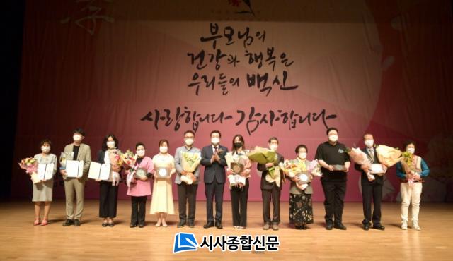 ƯÈ÷, Áßdz°ú ³ëȯÀ¸·Î ´©¿ö°è½Ã´Â °í·ÉÀÇ ºÎ¸ð´ÔÀ» ±ØÁøÇÑ È¿¼ºÀ¸·Î ºÀ¾çÇØ ±Í°¨ÀÌ µÈ ºÏ±¸ ±è¼ø¿Á(61,¿©)¾¾¿Í ±¤»ê±¸ È«¼º¾Ö(56,¿©)¾¾ µî È¿ÇàÀÚ 5¸í, ÀåÇѾî¹öÀÌ 4¸í, ³ëÀκ¹Áö±â¿©´Üü µî ¾î¹öÀ̳¯ °ü·Ã À¯°øÀÚ 15¸í¿¡ Á¤ºÎÆ÷»ó°ú ±¤ÁÖ½ÃÀå ǥâÀ» ½Ã»óÇß´Ù.