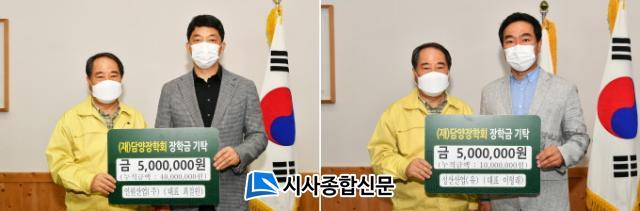 [½Ã»çÁ¾ÇսŹ® = ¿À½ÂÅà ±âÀÚ] (Àç)´ã¾çÀåÇÐȸ(ÀÌ»çÀå ÃÖÇü½Ä)´Â Áö³ 7ÀÏ Àοø»ê¾÷(ÁÖ)(´ëÇ¥ ÃÖö¿ø)¿Í ¼º»ê»ê¾÷(À¯)(»çÀå ÀÌÇü·¡)¿¡¼ Äڷγª19 Àå±âÈ·Î ¾î·Á¿î ¿©°Ç ¼Ó¿¡¼µµ Áö¿ªÀÎÀç À°¼ºÀ» À§ÇØ ½á´Þ¶ó¸ç °¢°¢ 500¸¸ ¿øÀÇ ÀåÇбÝÀ» ±âŹÇß´Ù°í ¹àÇû´Ù.