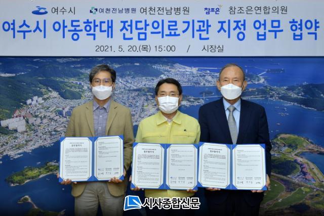 À̳¯ ½ÃÀå½Ç¿¡¼ ±Ç¿ÀºÀ ¿©¼ö½ÃÀå°ú ¿©ÃµÀü³²º´¿ø Á¤¿õ±æ º´¿øÀå, ÂüÁ¶Àº¿¬ÇÕÀÇ¿ø ¿ÀÂù±Õ ¿øÀåÀº ¡®¾Æµ¿ÇÐ´ë ´ëÀÀ ¹× ÇÇÇØ¾Æµ¿ º¸È£¸¦ À§ÇÑ ¾÷¹«Çù¾à¼¡¯¿¡ ¼¸íÇϸç ÀÇ·á¿Í ÇàÁ¤ÀÌ ÇϳªµÈ ¾Æµ¿º¸È£ Çù·Âü°è ±¸ÃàÀ» ´ÙÁüÇß´Ù.