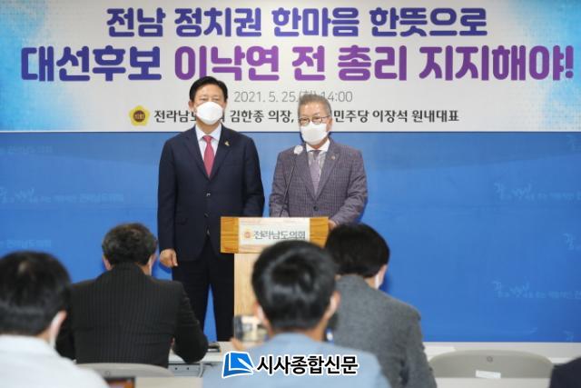 ÇÑÆí, Àü³²µµÀÇȸ ´õºÒ¾î¹ÎÁÖ´ç ¼Ò¼Ó 38¸íÀÇ ÀÇ¿øµéÀº Áö³ 21ÀÏ ±âÀÚȸ°ßÀ» ¿¾î À̳«¿¬ Àü ÃѸ® ´ë¼±Èĺ¸ ÁöÁö ¼º¸íÀ» ¹ßÇ¥ÇÑ ¹Ù ÀÖ´Ù.