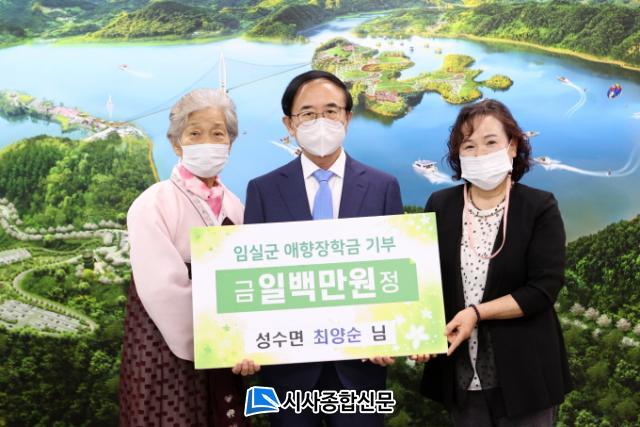 [½Ã»çÁ¾ÇսŹ® = ¿À½ÂÅà ±âÀÚ] ÀӽDZº ¼º¼ö¸é¿¡ °ÅÁÖÇÏ´Â ÃÖ¾ç¼ø ¾¾°¡ 26ÀÏ ±ºÃ»À» ¹æ¹®ÇØ Áö¿ª ÇлýµéÀ» À§ÇÑ ÀåÇÐ±Ý 100¸¸¿øÀ» (Àç)ÀӽDZº ¾ÖÇâÀåÇÐȸ ÀÌ»çÀåÀÎ ½É¹Î ±º¼ö¿¡°Ô Àü´ÞÇß´Ù.