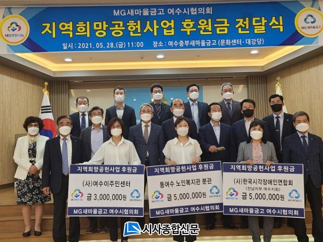 ¿©¼ö½Ã¿¡ µû¸£¸é 28ÀÏ ¿ÀÀü ¿©¼öÁߺλõ¸¶À»±Ý°í ´ë°´ç¿¡¼ Áö¿ª 13°³ »õ¸¶À»±Ý°í ÀÌ»çÀå°ú Áß¾Óȸ ¾È¼¼Âù ÀÌ»ç, ¿©¼ö½Ã °ü°èÀÚ, ¼öÇý´Üü°¡ Âü¼®ÇÑ °¡¿îµ¥ ¡®2021³â Áö¿ªÈñ¸Á°øÇå»ç¾÷¡¯ ÈÄ¿ø±Ý Àü´Þ½ÄÀÌ ¿·È´Ù.
