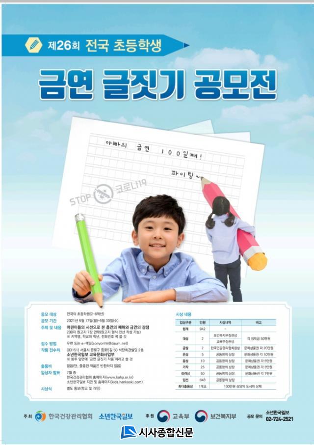 °ø¸ðÀü Á¢¼ö´Â ¿À´Â 6¿ù 30ÀÏ(¼ö)±îÁö ÁøÇàµÇ¸ç ÃʵîÇб³ 2~6ÇгâÀÌ¸é ´©±¸³ª Âü¿©ÇÒ ¼ö ÀÖ´Ù. ÁÖÁ¦´Â ¾î¸°À̵éÀÇ ½Ã¼±À¸·Î º» Èí¿¬ÀÇ ÆóÇØ¿Í ±Ý¿¬ÀÇ ÀåÁ¡, Èí¿¬¿¹¹æÀ» ÁÖÁ¦·Î ÀÏ»ó»ýȰ¿¡¼ °Ç°»ýȰ ½ÇõÀ» À¯µµÇÒ ¼ö ÀÖ´Â ³»¿ëÀÌ¸é µÈ´Ù.