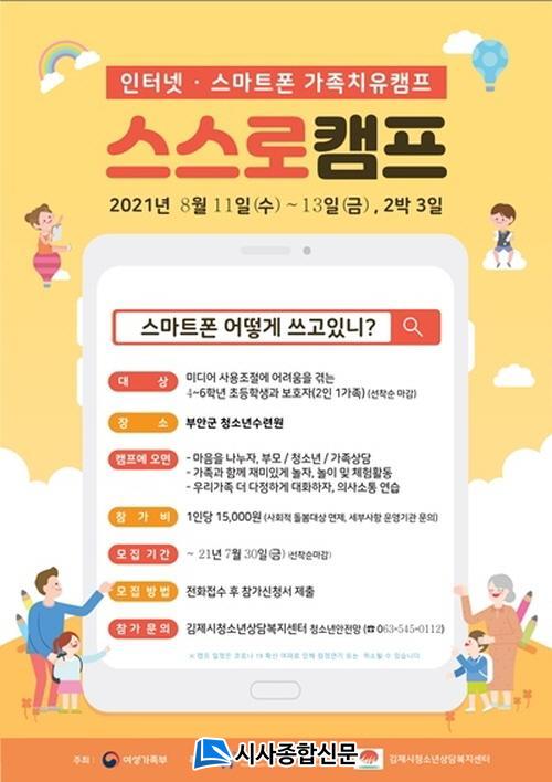 ±èÁ¦½Ãû¼Ò³â»ó´ãº¹Áö¼¾ÅÍ´Â 5³â ¿¬¼Ó °ø¸ð»ç¾÷¿¡ ¼±Á¤µÇ¾úÀ¸¸ç ¿ÃÇØ´Â ¿©¸§¹æÇÐ ±â°£ÀÎ 8¿ù 11ÀÏ(¼ö)~13ÀÏ(±Ý)±îÁö 2¹Ú 3Àϰ£ ºÎ¾Èû¼Ò³â¼ö·Ã¿ø¿¡¼ 14°¡Á·(û¼Ò³â 14¸í, Çкθð 14¸í)À» ´ë»óÀ¸·Î ¿î¿µµÇ¾î 7¿ù 30ÀÏ(±Ý)±îÁö ¸ðÁý ÁßÀÌ´Ù.