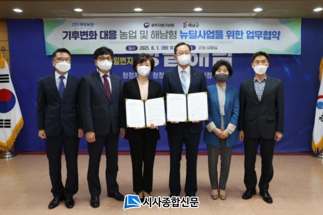 ÇØ³²±ºÃ» »óȲ½Ç¿¡¼ ÁøÇàµÈ Çù¾à½Ä¿¡´Â ¸íÇö°ü ÇØ³²±º¼ö¿Í ±è±Ý¶õ ±¤ÁÖÁö¹æ±â»óûÀåÀÌ Âü¼®ÇÑ °¡¿îµ¥ ±âÈÄÀ§±â »óȲ¿¡ ´ëÀÀÇÏ´Â ÁöÀÚüÀÇ ¿ª·®À» °ÈÇϰí, ÇØ³²Çü ±×¸°´ºµô »ç¾÷ ÃßÁøÀ» À§ÇÑ ÇùÁ¶Ã¼°è¸¦ ±¸ÃàÇϱâ·Î Çß´Ù.