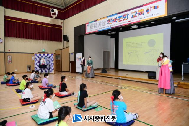 ¿ÀÀüÀº ½Ç³»¿¡¼ ÇѺ¹ ¿ÊÂ÷¸² ÇØº¸±â, ÀÎ»ç ¿¹Àý¹ý ¹è¿ì±â µî ¿¹Àý±³À°À» ÁøÇàÇϰí, ¿ÀÈÄ¿¡´Â Âü¿© Çлý ¸ðµÎ ÇѺ¹À» ÀÔ°í ±¤ÇÑ·ç¿ø°ú Á¶°©³à ¸í¹«°ü, °ü¼´ç µî ¿ì¸® °íÀåÀÇ ¼ûÀº ¸í¼Ò¸¦ ã¾Æ ÀüÅë³îÀÌ, ¸¶ÆÐÁ¶°¢ ã±â °ÔÀÓ, ÈÆÀå´Ô°ú ¹®Á¦ Ç®±â µî ´Ù¾çÇϰí Àç¹ÌÀÖ´Â ¾ß¿Ü üÇèȰµ¿À» ÁøÇàÇÏ¿© ¿ì¸®ÀÇ ¼ÒÁßÇÑ ¹®ÈÀ¯»êÀÎ ÇѺ¹ÀÇ °¡Ä¡¿Í ÀüÅë¹®È ÀÌÇØ¸¦ µ½´Â ±âȸ¸¦ Á¦°øÇß´Ù.