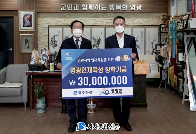 [½Ã»çÁ¾ÇսŹ® = ¿À½ÂÅà ±âÀÚ] ¢ß±¤ÁÖÀºÇàÀº Áö³ 8ÀÏ ¿µ±¤±ºÀ» ¹æ¹®ÇÏ¿© ¿µ±¤±ºÀÎÀçÀ°¼º±â±Ý¿¡ ÀåÇÐ±Ý 3õ¸¸ ¿øÀ» Àü´ÞÇß´Ù.