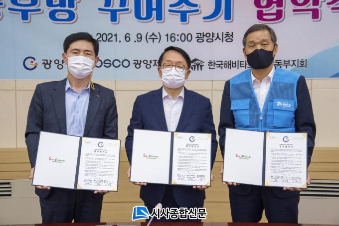 | ±¤¾çÁ¦Ã¶¼Ò(¼ÒÀå ±èÁö¿ë)°¡ 9ÀÏ ´Ù¹®È°¡Á¤ ¾Æµ¿µéÀÇ ÇнÀȯ°æ °³¼±À» À§ÇØ ±¤¾ç½Ã, Çѱ¹ÇغñŸƮ¿Í ¼ÕÀâ°í ¡®Àú¼Òµæ ´Ù¹®È°¡Á¤ °øºÎ¹æ ²Ù¸çÁֱ⡯ »ç¾÷ Çù¾àÀ» ü°áÇß´Ù.(¿ÞÂʺÎÅÍ ÀÌöȣ ±¤¾çÁ¦Ã¶¼Ò »ó¹«, ±è°æÈ£ ±¤¾çºÎ½ÃÀå, ±è¿ëÈ£ Çѱ¹ÇغñŸƮ Àü³²µ¿ºÎÁöȸ ÀÌ»çÀå)