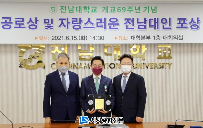 Àüµ¿Æò ¿µ¾Ï±º¼ö´Â ¡°¿ÃÇØ ¡®ÀÚ¶û½º·¯¿î Àü³²´ëÀΡ¯À̶ó´Â ¾î´À »óº¸´Ù ¿µ±¤½º·´°í °ªÁø »óÀ» ¹Þ¾Æ À̷縻ÇÒ ¼ö ¾øÀÌ ±â»Ú´Ù.¡± ¸ç ¡°¿ì¸® Àü³²´ëÇб³ÀÇ °³±³ 69ÁÖ³âÀ» Áø½ÉÀ¸·Î ÃàÇϵ帮¸ç, ¾ÕÀ¸·Îµµ ¸í½Ç»óºÎÇÑ ±Û·Î¹ú´ëÇÐÀ¸·Î¼ÀÇ À§»ó¿¡ °É¸Â°Ô ´ëÇѹα¹À» ³Ñ¾î ¼¼°èÀûÀÎ ÀÎÀ縦 ¾ç¼ºÇÏ´Â ´ëÇÐÀ¸·Î ´õ¿í ¿õºñÇØ ³ª°¡±â¸¦ ±â´ëÇÑ´Ù.¡±°í ¹àÇû´Ù.