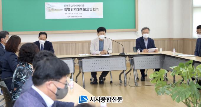 ¾Æ¿ï·¯, Çб³ °ü°èÀÚ¿Í °£´ãȸ¸¦ ÅëÇØ ÇâÈÄ Çлç¿î¿µ ¹æ¾È, Á¤¸í¿©Áß ±Þ½Ä½Ç ÁõÃà, È®ÁøÀÚ ¹ß»ý ½Ã ¿ø°Ý¼ö¾÷ Àüȯ µî¿¡ ´ëÇØ ³íÀÇÇß´Ù.