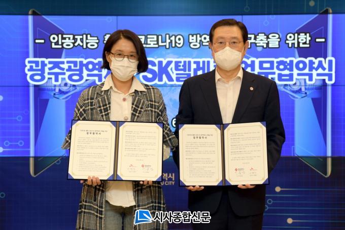 ±¤ÁÖ±¤¿ª½Ã´Â 21ÀÏ À̿뼷 ½ÃÀå, SKT ÀÌÇö¾Æ AI&COÀå, ÀÌ¿µÅ¹ CRÁö¿ø´ã´ç, ½É»ó¼ö ¼ºÎInfraº»ºÎÀå µîÀÌ Âü¼®ÇÑ °¡¿îµ¥ Äڷγª19ÀÇ ¾ÈÀüÇÑ ¹æ¿ªÃ¼°è ±¸Ãà°ú È¿À²Àû °ü¸®¸¦ À§ÇØ SKÅÚ·¹ÄÞ¢ß(ÀÌÇÏ SKT)°ú ÀΰøÁö´É ¡®´©±¸(NUGU) ÄɾîÄÝ¡¯ Ȱ¿ë ¾÷¹«Çù¾àÀ» ü°áÇß´Ù.
