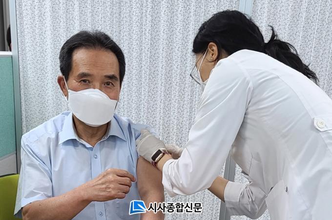 Áö³ 4¿ù ¾Æ½ºÆ®·ÎÁ¦³×Ä« ¹é½ÅÀ¸·Î 1Â÷ Á¢Á¾À» ¸¶Ä£ Ȳ ±º¼ö´Â À̳¯ 2Â÷ Á¢Á¾À» À§ÇØ Á¢Á¾½Ç¿¡ µé·¯ ¹Ì¸® ÀÛ¼ºÇÑ ¿¹ÁøÇ¥¸¦ Á¦ÃâÇϰí ÀÇ»çÀÇ ¿¹ÁøÀ» °ÅÃÄ 2Â÷ ¾Æ½ºÆ®¶óÁ¦³×Ä«(AZ) ¹é½ÅÁ¢Á¾À» ¸¶ÃÆ´Ù.