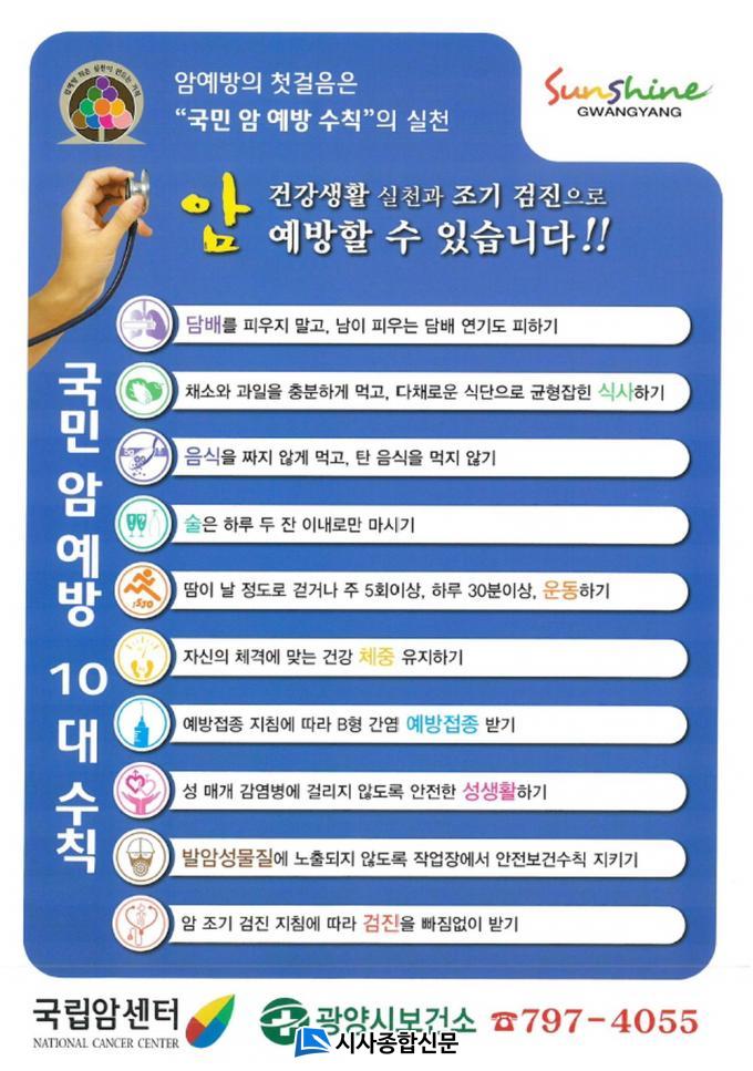 ±¤¾ç½Ãº¸°Ç¼Ò´Â Äڷγª19 »óȲ¿¡¼µµ 2021³âµµ ±¹°¡ ¾Ï °ËÁø ¼ö°Ë·üÀ» ³ôÀ̰íÀÚ Ã¤º¯Åë ºñÄ¡, °ËÁø¾È³»¹®, ÀüÈ»ó´ã, ¹®ÀÚ¼ºñ½º, À¯°ü±â°ü µî È«º¸ Ȱµ¿À» Çϰí ÀÖ´Ù.