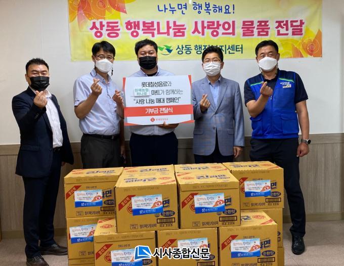 [½Ã»çÁ¾ÇսŹ® = ¿À½ÂÅà ±âÀÚ] ·Ôµ¥Ä¥¼ºÀ½·á ¸ñÆ÷ÁöÁ¡(ÁöÁ¡Àå ±è¾ç¼ö)°ú ¸ñÆ÷¿ø¿¹³óÇù Çϳª·Î¸¶Æ®(Á¡Àå ±è¿µ±¹)°¡ Áö³ 17ÀÏ »óµ¿ÇàÁ¤º¹Áö¼¾Å͸¦ ÅëÇØ ¿ÂÁ¤À» ³ª´³´Ù.