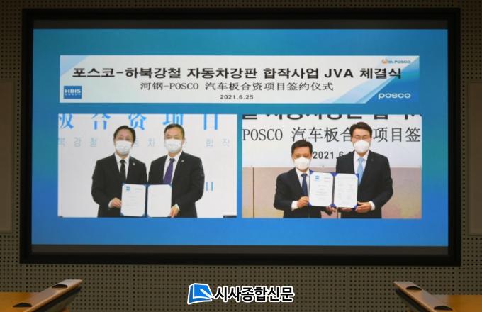 (1) Æ÷½ºÄÚ¿Í ÇϺϰöÀÌ 25ÀÏ ¿Â¶óÀÎÀ¸·Î, Áß±¹³» ÀÚµ¿Â÷¿ë µµ±Ý°ÆÇ »ý»ê¡¤ÆÇ¸Å¸¦ À§ÇÑ ÇÕÀÛ»ç¾÷ ¼¸í½ÄÀ» °³ÃÖÇß´Ù. »çÁø ¿ÞÂʺÎÅÍ ÇϺϰö ¿ì¿ë(éÍé¸) µ¿»çÀå, ¿Õ³À§(èÝ兰è¬) ÃѰ渮, Æ÷½ºÄÚ ±èÇе¿ ö°ºÎ¹®Àå, ÃÖÁ¤¿ì ȸÀå