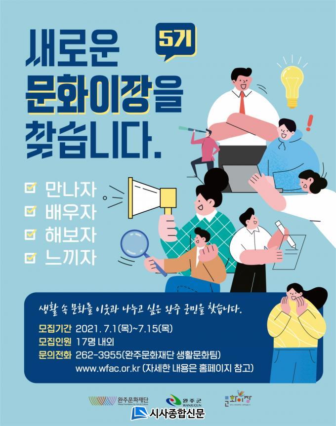 ¹®ÈÀÌÀå 5±â´Â 1³âÂ÷¿¡ »ýȰ¹®È ±âȹ ¿ª·® °È À§Å©¼óÀ» ÅëÇØ ¹®ÈÀÌÀåÀ¸·Î Ȱµ¿ÇÒ ¼ö ÀÖ´Â ´É·ÂÀ» ½ÅÀå½Ã۰í, 2³âÂ÷¿¡ ¹®È¹Ý»óȸ¸¦ ¿î¿µÇÏ¿© ÁֹεéÀÇ ÀǰßÀ» Åä´ë·Î Áö¿ª¿¡ ÇÊ¿äÇÑ ¹®È ÀÇÁ¦¸¦ ¹ß±¼Çϰí, 3³âÂ÷¿¡ ÀÚ±âÁÖµµ ÇÁ·ÎÁ§Æ®¸¦ ÅëÇØ ¹ß±¼µÈ ¹®ÈÀÇÁ¦¸¦ ÇØ°áÇÏ´Â ¿ªÇÒÀ» ¸Ã¾Æ ¿ÏÁÖ¹®ÈÀç´ÜÀÇ ÆÄÆ®³Ê·Î 3³â µ¿¾È Ȱµ¿ÇÒ ¿¹Á¤ÀÌ´Ù.
