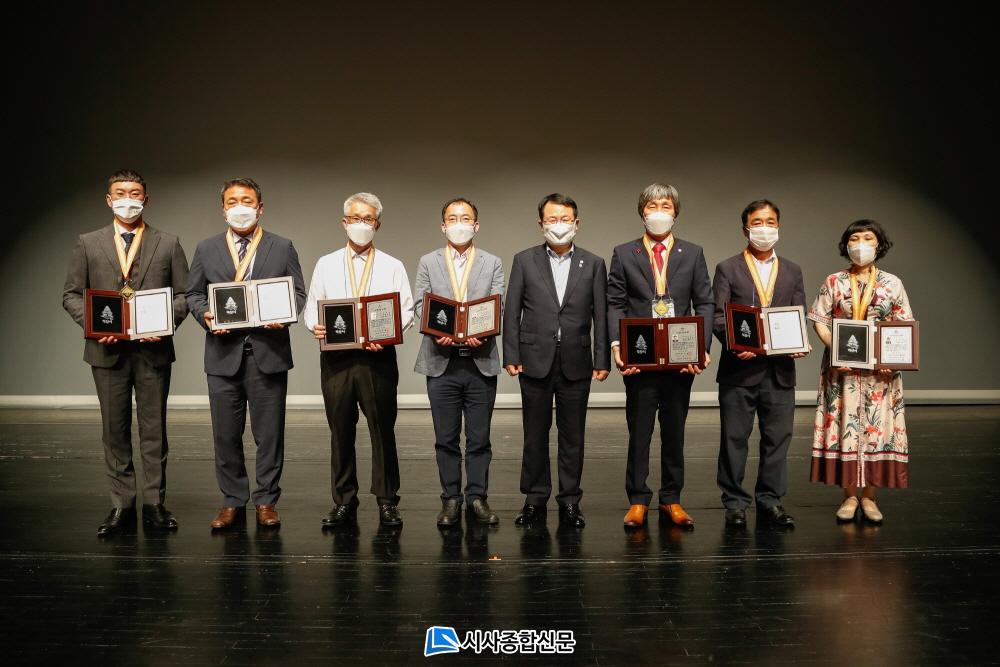 À̳¯ ½Ã»ó½Ä¿¡´Â ¡ã¹®ÈüÀ°´ë»ó ±èÀºÃ¶ ¡ã»ê¾÷´ë»ó ¼ÒÁ¾±Ù ¡ã»çȸºÀ»ç´ë»ó ±è¿µÇÑ ¡ãÈ¿Çà´ë»ó ¹ÚÇØ¿µ ¡ãģȯ°æ´ë»ó °°ø¾ð ¡ã³ó¾÷´ë»ó ÃÖâ¿Á ¡ã±³À°´ë»ó ÀÌ¿µ¶õ¾¾ µî 7¸í¿¡ ´ëÇØ ½Ã»óÀÌ ÀÌ·ïÁ³´Ù.