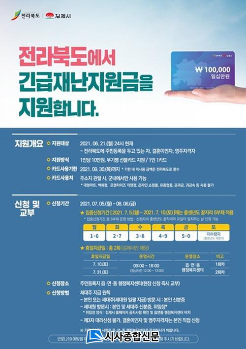 ÇÑÆí ½Ã´Â Àç³Áö¿ø±Ý Áö±ÞÀ» À§ÇÏ¿© Áö³ 5¿ù 31ÀÏ NH³óÇùÀºÇà ±èÁ¦½ÃÁöºÎ¿Í ¾÷¹«Çù¾àÀ» ü°áÇϰí Äڷγª19·Î ÀÎÇÏ¿© °æÁ¦Àû ¾î·Á¿òÀ» °Þ°í ÀÖ´Â ±èÁ¦½Ã¹ÎÀ» À§ÇÏ¿© ½±°í Æí¸®ÇÏ°Ô »ç¿ëÇÒ ¼ö ÀÖ´Â ¼±ºÒÄ«µå¸¦ Á¦ÀÛÇÏ¿© Áغñ¸¦ ¿Ï·áÇß´Ù.