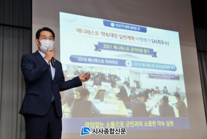 ±ÇÀÍÇö ±º¼ö´Â ±â³ä»ç¿¡¼ ¡°ºÎ¾ÈÀÇ ¿ÏÀüÇÏ°í »õ·Î¿î º¯È¸¦ À§ÇØ ¿À·¡µÈ °üÇàÀ» ŸÆÄÇϰí ÀÏ Áß½ÉÀÇ ÇàÁ¤ ½ÇÇöÀ» À§ÇØ ÀÚÀ²¼ºÀ» ÁÖ¹®ÇØ ¿Ô´Ù¡±¸ç ¡°ÀÌ·Î ÀÎÇØ ½ÃÇàÂø¿Àµµ ¸¹¾ÒÁö¸¸ 1000¿© °øÁ÷ÀÚµéÀÇ °ÅµìµÈ º¯È¿Í Çõ½ÅÀ» ÅëÇØ ºÎ¾È¹ßÀüÀÇ Å« ȹÀ» ±ß´Â ¼º°ú¸¦ ÀÌ·ï³»°Ô µÆ´Ù¡±°í ¸»Çß´Ù.