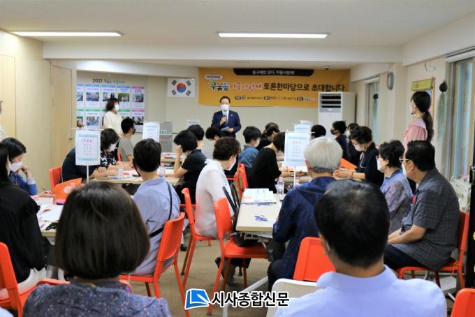 Âü¼®ÀÚ´Â Äڷγª19 »çȸÀû °Å¸®µÎ±â Áؼö¸¦ À§ÇØ 30¸í ³»¿Ü·Î Á¦ÇÑÇÏ¸ç µ¿±¸ 6°³ µ¿ ¸¶À»»ç¶ûä¿¡¼ ¸¶À»»ç¶ûä ¿î¿µÇöȲ ¹× ¿î¿µ¹æÇâ¿¡ ´ëÇØ ¾Ë¾Æº¸°í ÁֹεéÀÇ ÁúÀÇ¡¤ÀÀ´ä ¼øÀ¸·Î ÁøÇàµÈ´Ù.