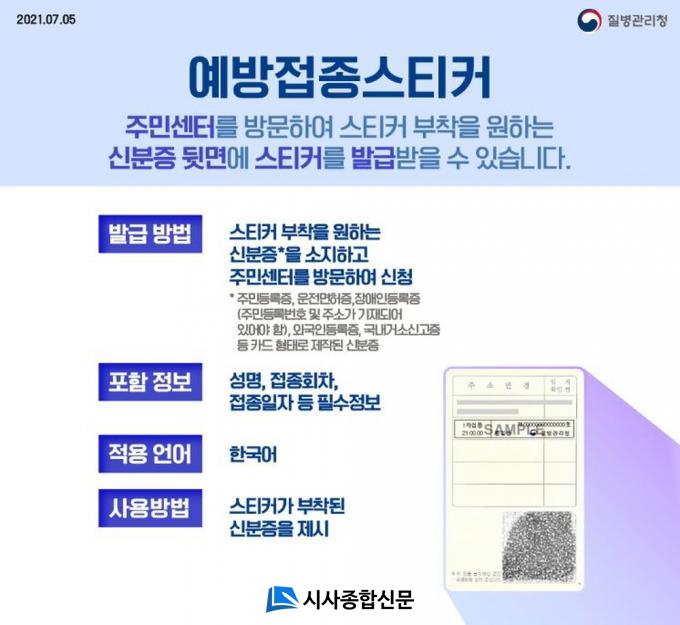 ¿¹¹æ Á¢Á¾ ¿Ï·áÀÚ´Â ½º¸¶Æ®Æù ¾ÖÇø®ÄÉÀÌ¼Ç ¶Ç´Â Á¾ÀÌ·Î µÈ ¿¹¹æÁ¢Á¾Áõ¸í¼, À¾‧¸é ÇàÁ¤º¹Áö¼¾ÅÍ¿¡¼ Ãâ·ÂÇÑ ½ºÆ¼Ä¿¸¦ ¹ß±Þ¹Þ¾Æ ¿¹¹æÁ¢Á¾À» Áõ¸íÇÒ ¼ö ÀÖ´Ù.