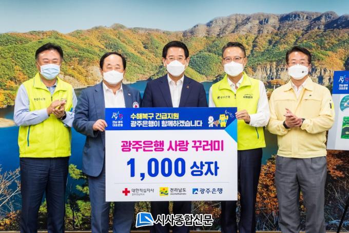 ÇÑÆí, ±¤ÁÖÀºÇàÀº Áö³ÇØ ±¤ÁÖ¡¤Àü³²À» ÈÛ¾´ ¹°³¸®·Î 8°³ ½Ã±ºÀÌ Æ¯º°Àç³Áö¿ªÀ¸·Î ¼±Æ÷µÇ´Â µî Å« ¾î·Á¿òÀ» °Þ¾ú´ø ¶§¿¡µµ ±¤ÁÖ±¤¿ª½Ã¿¡ 500°³, Àü¶ó³²µµ¿¡ 800°³ÀÇ ±ä±Þ±¸È£¹Ú½º¸¦ Á÷Á¢ Á¦ÀÛÇØ Àü´ÞÇÑ ¹Ù ÀÖ´Ù.