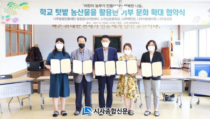 ³ªÁÖ½Ã(½ÃÀå °ÀαÔ)´Â Áö³ 16ÀÏ ³ªÁÖ³ó¾÷ÁøÈïÀç´Ü, ³ë¾È³²ÃʵîÇб³, ¾î¸°À̺¹Áö½Ã¼³(3°³¼Ò) µî 5°³ ±â°üÀÌ Âü¿©ÇÏ´Â ¡®Çб³ÅÔ¹ç ³ó»ê¹°À» Ȱ¿ëÇÑ ±âºÎ ¹®È È®´ë Çù¾à½Ä¡¯À» °³ÃÖÇß´Ù°í 19ÀÏ ¹àÇû´Ù.