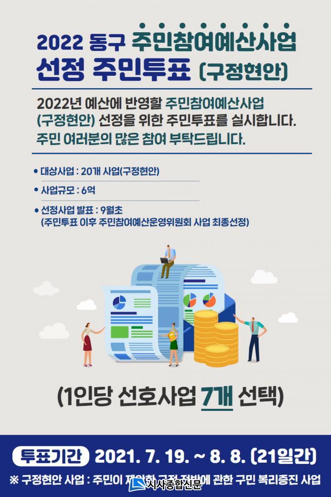 µ¿±¸´Â ÀÌÈÄ ÁÖ¹ÎÂü¿©¿¹»ê¿î¿µÀ§¿øÈ¸ ½ÉÀǸ¦ °ÅÃÄ ±¸Á¤Çö¾È 6¾ï ¿ø, Áö¿ªÇö¾È 1¾ï5õ¸¸ ¿ø µî 7¾ï5õ¸¸ ¿ø ±Ô¸ðÀÇ ÃÖÁ¾»ç¾÷À» ¼±Á¤ÇÒ °èȹÀÌ´Ù.