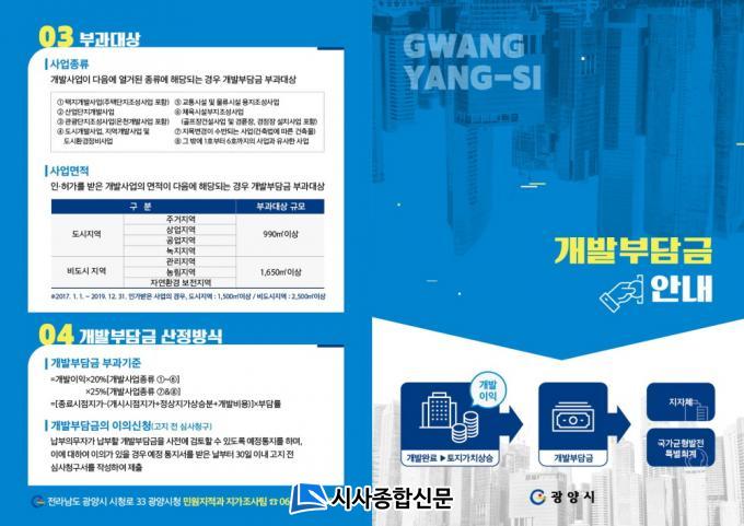 ±¤¾ç½Ã´Â °³¹ßºÎ´ã±Ý Á¦µµÀÇ ³·Àº ÀÎÁöµµ, È«º¸ ºÎÁ·, °³¹ß»ç¾÷ Áذø ÈÄ °Å¾×ÀÇ °³¹ßºÎ´ã±Ý ºÎ°ú µî¿¡ µû¶ó ¹ß»ýÇÏ´Â °³¹ßºÎ´ã±Ý ¹Î¿øÀ» ÇØ¼ÒÇϰíÀÚ ¸®Çø´ 2,000¸Å¸¦ Á¦ÀÛÇØ ¹Î¿øÁöÀû°ú, °ü·Ã ºÎ¼¿Í À¾¸éµ¿»ç¹«¼Ò¿¡ È«º¸¹°À» ¹èºÎÇÏ°í ½Ã È¨ÆäÀÌÁö¸¦ Ȱ¿ëÇØ ¼±Á¦ÀûÀ¸·Î È«º¸ÇÒ °èȹÀÌ´Ù.