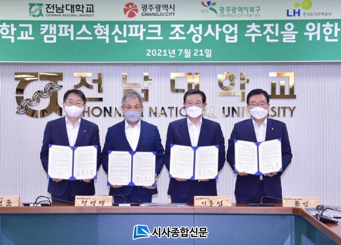 ±¤ÁÖ½Ã¿Í Àü³²´ë, ºÏ±¸, Çѱ¹ÅäÁöÁÖÅðø»ç´Â 21ÀÏ ¿ÀÀü Àü³²´ë ´ëÇк»ºÎ ´ëȸÀǽǿ¡¼ À̿뼷 ½ÃÀå°ú Á¤¼ºÅà ÃÑÀå, ¹®ÀΠûÀå, ±èÇöÁØ »çÀåÀÌ Âü¼®ÇÑ °¡¿îµ¥ Àü³²´ë Ä·ÆÛ½ºÇõ½ÅÆÄÅ© Á¶¼º»ç¾÷ ÃßÁøÀ» À§ÇÑ ±âº»Çù¾àÀ» ü°áÇß´Ù.