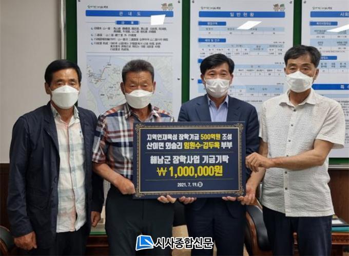 »êÀÌ¸é ¿Ü¼Û¸® ÀÓÈͼö¡¤±èµÎ¿Á ºÎºÎ´Â 19ÀÏ ÇØ³²±º ÀåÇлç¾÷±â±ÝÀ¸·Î 100¸¸¿øÀ» ±âŹÇß´Ù. ºÎºÎ°¡ ¸¶·ÃÇÑ ±â±ÝÀº ¹ãÈ£¹Ú°ú °¨ÀÚ ³ó»ç¿¡¼ ³ª¿Â ¼öÀÍ.