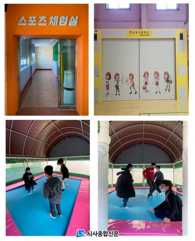 °¡»óÇö½Ç ½ºÆ÷Ã÷½ÇÀº ±³½Ç°ú üÀ°°ü¿¡ ¼³Ä¡µÇ¾î ÀÖÀ¸¸ç, VR ±â±â¸¦ ÀÌ¿ëÇÏ¿© ¼¾¼³ª µ¿ÀÛ ¸ð¼ÇÀ» ÅëÇØ ´Ù¾çÇÑ Ã¼À°È°µ¿À» Áñ±æ ¼ö ÀÖ´Â ¼ö¾÷À» ÁøÇàÇϰí ÀÖ´Ù. ¸ÅÀÏ ¾ÆÄ§ ½Ç½ÃÇϴ ü·ÂÁõÁø ÇÁ·Î±×·¥ ½Ã°£, üÀ°½Ã°£, ¹æ°ú ÈÄ e½ºÆ÷Ã÷ ½Ã°£¿¡ »ç¿ëµÇ°í ÀÖ´Ù.