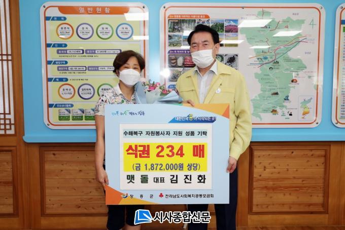 [½Ã»çÁ¾ÇսŹ® = ¿À½ÂÅà ±âÀÚ] ½Ã¿øÇÑ ¼¸®Å Äá±¹¼ö·Î À¯¸íÇÑ Áö¿ª ¸ÀÁý ¸Ëµ¹ ±èÁøÈ ´ëÇ¥°¡ Áö³ 7.5.~7.8. ¼öÇØÇÇÇØÁö¿ª º¹±¸¸¦ À§ÇØ ±¸½½¶¡À» È기 ºÀ»çÀڵ鿡°Ô Àü´ÞÇØ ´Þ¶ó¸ç ½Ä±Ç 234¸Å(190¸¸¿ø »ó´ç)¸¦ 28ÀÏ ÀåÈﱺ¿¡ ±âŹÇß´Ù.