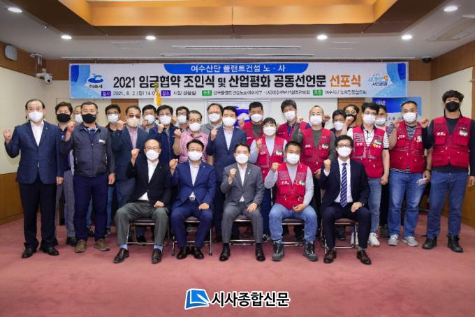 [½Ã»çÁ¾ÇսŹ® = ¿À½ÂÅà ±âÀÚ] ¿©¼öÁö¿ª Ç÷£Æ®°Ç¼³ ³ë»ç°¡ ¿ÃÇØ ÀÓ±ÝÇù¾àÀ» Ÿ°áÇϰí, 2ÀÏ Á¶Àνİú ÇÔ²² »ê¾÷ÆòÈ Á¤ÂøÀ» À§ÇÑ °øµ¿¼±¾ð¹®À» ¼±Æ÷Çß´Ù.
