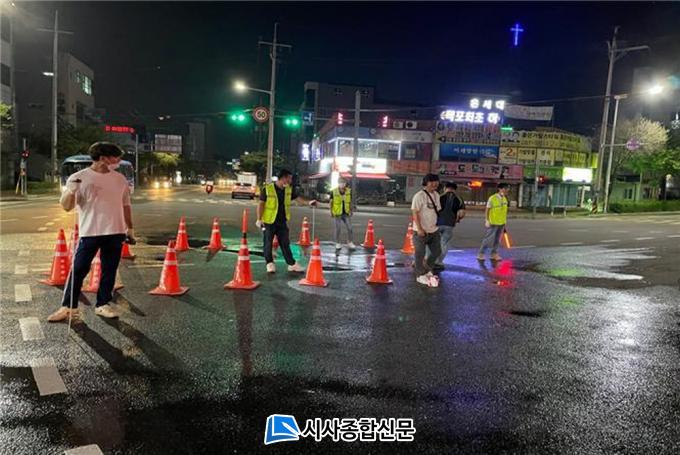¸ñÆ÷½Ã´Â À̸¶Æ® ¿À°Å¸® µµ·Î¿¡ ¹°ÀÌ °í¿©ÀÖ´Â °ÍÀ» È®ÀÎÇÑ µÚ ¾ß°£´©¼öŽ»ç¸¦ ½Ç½ÃÇØ ´©¼öÁöÁ¡À» ÆÄ¾ÇÇß´Ù. ´©¼ö¿øÀÎÀº 450mm ¹è¼ö°üÀÇ ÆÄ¼ÕÀ¸·Î ÃßÁ¤µÇ¸ç, À̸¶Æ® ¿À°Å¸®´Â Â÷·® ÅëÇàÀÌ ¸¹°í ´Ü¼ö ¹üÀ§°¡ ³Ð¾î ÆòÀÏ ÁÖ°£ ÀÛ¾÷ÀÌ ¾î·Á¿î ¿©°ÇÀÌ´Ù.