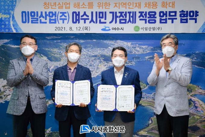12ÀÏ ¿©¼ö½Ã¿¡ µû¸£¸é À̳¯ ¿ÀÀü ½ÃÀå½Ç¿¡¼ ¡®ÀÌÀÏ»ê¾÷(ÁÖ) ¿©¼ö½Ã¹Î°¡Á¡Á¦ Àû¿ë Çù¾à½Ä¡¯ÀÌ ¿·È´Ù.