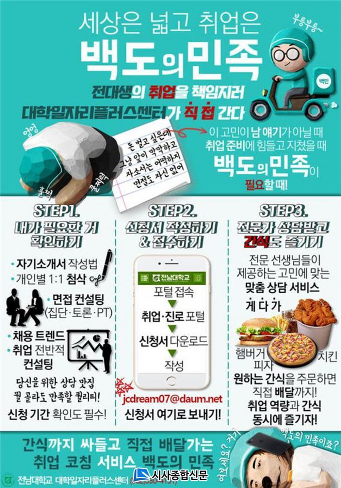 | Àü³²´ëÇб³, ã¾Æ°¡´Â Ãë¾÷µ¿¾Æ¸® ÄÁ¼³ÆÃ ÁøÇà 11ÀϺÎÅÍ ¡®¹éµµÀÇ ¹ÎÁ·¡¯ ½Åû¹Þ¾Æ |