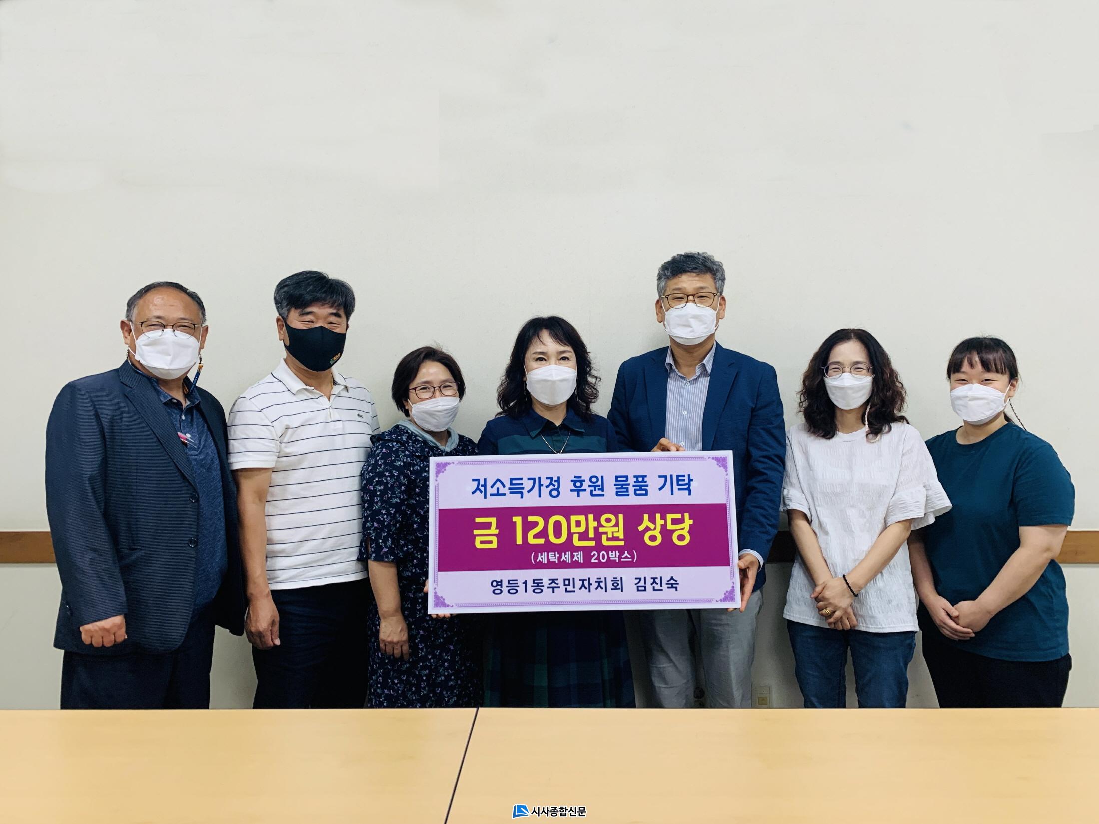 [½Ã»çÁ¾ÇսŹ® = ¿À½ÂÅà ±âÀÚ] ÀÍ»ê½Ã ¿µµî1µ¿ÁÖ¹ÎÀÚġȸ ºÎÀ§¿øÀåÀÎ ±èÁø¼÷ À§¿øÀº Àú¼Òµæ °¡Á¤¿¡°Ô Áö¿øÇØ ´Þ¶ó¸ç ±Ý120¸¸¿ø »ó´ç(20¹Ú½º)ÀÇ ¼¼Å¹ ¼¼Á¦¸¦ ¿µµî1µ¿ÇàÁ¤º¹Áö¼¾ÅÍ¿¡ Àü´ÞÇß´Ù.