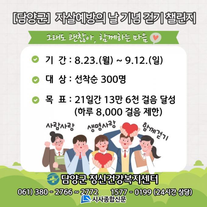[½Ã»çÁ¾ÇսŹ® = ¿À½ÂÅà ±âÀÚ] ´ã¾ç±º º¸°Ç¼Ò Á¤½Å°Ç°º¹Áö¼¾ÅÍ´Â 9¿ù 10ÀÏ '¼¼°è ÀÚ»ì ¿¹¹æÀÇ ³¯'À» ¸Â¾Æ Àڻ쿹¹æÀÇ ³¯ ±â³ä °È±â 縰Áö¸¦ ÁøÇàÇÑ´Ù°í ÀüÇß´Ù.
