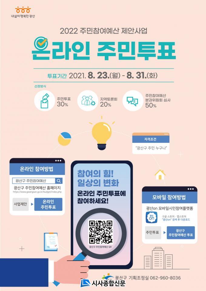 À̹ø ÅõÇ¥´Â 23ÀϺÎÅÍ 31ÀϱîÁö ±¤»ê±¸ ÁÖ¹ÎÂü¿©¿¹»ê ȨÆäÀÌÁö(https://www.gwangsan.go.kr/budget/)¿Í ¸ð¹ÙÀϽùÎÂü¿©Ç÷§Æû ¡®±¤»êon¡¯¿¡¼ ÁøÇàµÈ´Ù.