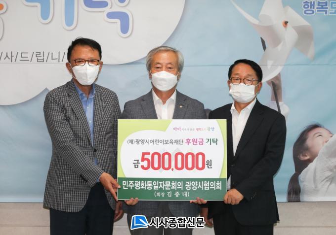 ¹ÎÁÖÆòÅë ±¤¾ç½ÃÇùÀÇȸ ±èÁ¾´ë ȸÀåÀº ¡°Çѹݵµ ÆòÈ±â¿ø ¿µ»ó °ø¸ðÀü¿¡¼ ¹ÞÀº ½Ã»ó±ÝÀ» ÁÁÀº °÷¿¡ ¾²ÀÚ´Â ÀÚ¹®À§¿øµéÀÇ ¶æ¿¡ µû¶ó ±âŹÇÏ°Ô µÆ´Ù¡±¸ç, ¡°±¤¾ç½Ã ¹Ì·¡ÀÇ ÁÖ¿ªÀÎ ¾ÆÀ̵éÀÇ º¹Áö¿¡ ÀÛÀº º¸ÅÆÀÌ µÆÀ¸¸é ÁÁ°Ú´Ù¡±°í ¸»Çß´Ù.