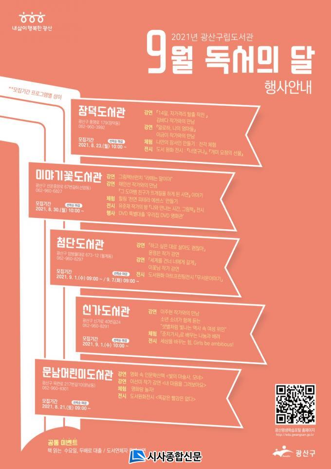 ÇÑÆí, µ¶¼ÀÇ ´Þ ÇÁ·Î±×·¥ °ü·Ã ¾È³»»çÇ×°ú ¼ö°½ÅûÀº ±¤»ê±¸ Æò»ýÇнÀÆ÷ÅÐ(http://edu.gwangsan.go.kr)¿¡¼ È®ÀÎ °¡´ÉÇÏ´Ù. ±âŸ ÀÚ¼¼ÇÑ »çÇ×Àº °¢ ÇÁ·Î±×·¥ÀÌ ÁøÇàµÇ´Â Àå´öµµ¼°ü(062-960-3992), À̾߱â²Éµµ¼°ü(062-960-6827),÷´Üµµ¼°ü(062-960-8297),½Å°¡µµ¼°ü(062-960-8291), ¿î³²¾î¸°À̵µ¼°ü (062-960-8301) ¶Ç´Â ±¤»ê±¸ µµ¼°ü°ú(062-960-3943)¿¡ ¹®ÀÇÇÏ¸é µÈ´Ù.