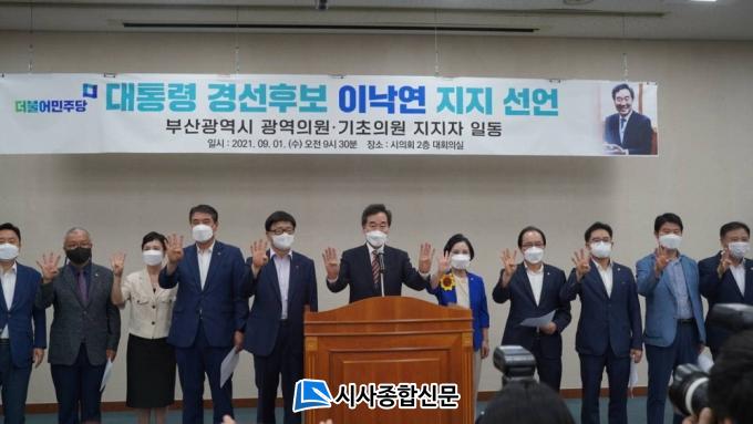 ´õºÒ¾î¹ÎÁÖ´ç ºÎ»ê½Ã´ç ¼Ò¼Ó ±¤¿ªÀÇ¿ø ¹× ±âÃÊÀÇ¿ø 66¸íÀº 1ÀÏ ¿ÀÀü ºÎ»ê½ÃÀÇȸ 2Ãþ ´ëȸÀǽǿ¡¼ À̳«¿¬ Èĺ¸ ÁöÁö¼±¾ð ±âÀÚȸ°ßÀ» ÇÑ µÚ µ¿¼®ÇÑ À̳«¿¬ Èĺ¸¿Í ¡®±âÈ£4¹ø¡¯À» ¶æÇÏ´Â ¼Õ°¡¶ôÀ» Æì ±â³äÃÔ¿µÀ» Çϰí ÀÖ´Ù.
