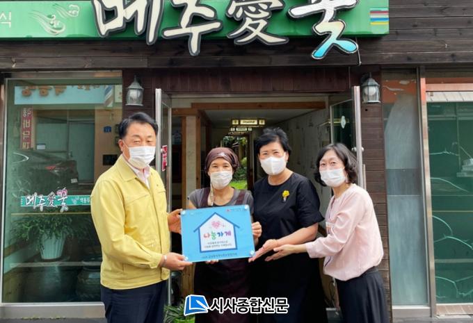 ³ªÁֽà ±Ý³²µ¿ Áö¿ª»çȸº¸ÀåÇùÀÇü(À§¿øÀå º¯µ¿Áø, ÇãÇö¼÷)Àº 1ÀÏ ¡®¹Ø¹ÝÂù µµ½Ã¶ô ³ª´®¡¯ »ç¾÷¿¡ ¹Ø¹ÝÂùÀ» Á¦°øÇØÁØ °ü³» ½Ä´ç¾÷ü 6°÷¿¡ ¡®³ª´®°¡°Ô¡¯ ÀÎÁõ ÇöÆÇÀ» ºÎÂøÇß´Ù°í ¹àÇû´Ù.