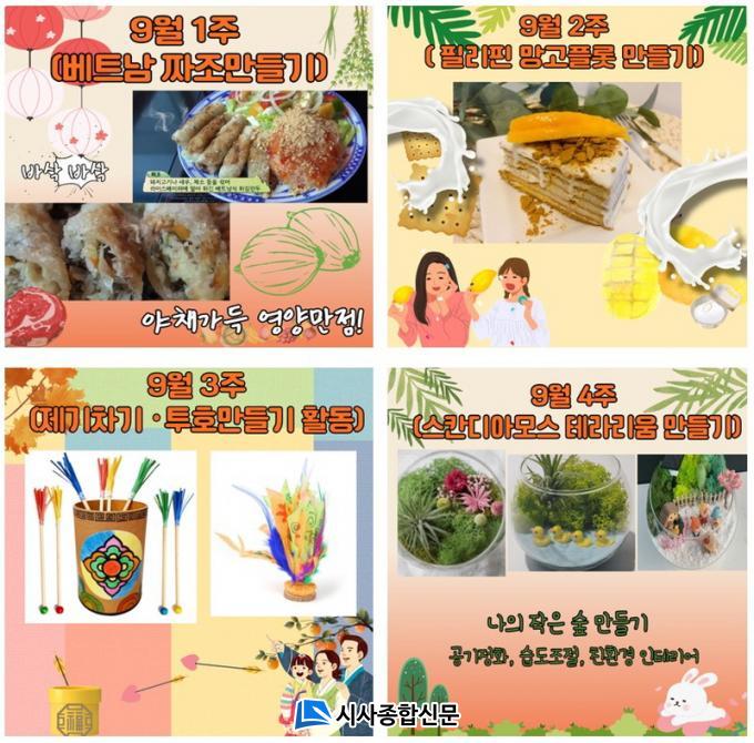 ÇÑÆí, ¼¾ÅÍ¿¡¼´Â Áö³ 8¿ù 4ÁÖ°£ ¡®°úÀÏ ¾ÆÀ̽ºÅ©¸² ¸¸µé±â¡¯, ¡®¸á·Ð ºù¼ö ¸¸µé±â¡¯, ¡®Æë±Ï ¾óÀ½±ú±â º¸µå³îÀÌ¡¯, ¡®Ç²±Öû ¸¸µé±â¡¯¿¡ 29°¡±¸(118¸í)°¡ Âü¿©ÇÏ¿© Ȱµ¿À» Á¾·áÇÏ¿´À¸¸ç, Äڷγª19¿¡ µû¸¥ ºñ´ë¸é Ȱµ¿ ¼ö¿ä°¡ ¸¹¾Æ 9¿ù¿¡µµ Ãß¼®À» ¸Â¾Æ ´Ù¾çÇÑ È°µ¿À¸·Î ÁغñÇÏ¿´´Ù.