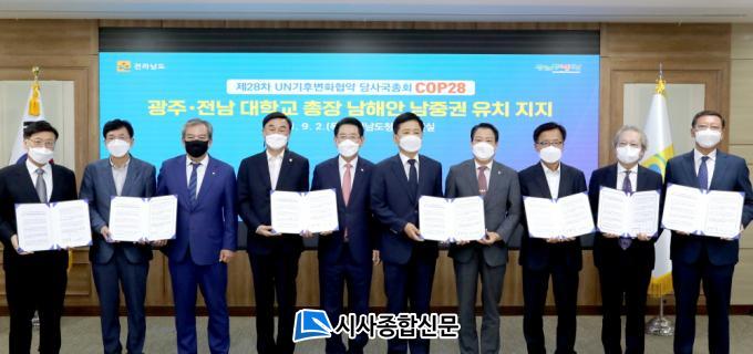°£´ãȸ ÈÄ¿¡´Â À¯¿£±âÈĺ¯ÈÇù¾à ´ç»ç±¹ÃÑȸ(COP28) ³²ÇØ¾È ³²Áß±Ç À¯Ä¡¸¦ À§ÇÑ ´ëÇÐ ÃÑÀåµéÀÇ À¯Ä¡ÁöÁö ¼¸í½Äµµ ÁøÇàÇß´Ù. ±¤ÁÖ‧Àü³²Áö¿ª´ëÇб³ÃÑÀåÇùÀÇȸ´Â Àü ¼¼°è ±âÈĺ¯È ´ëÀÀ°ú Áö¼Ó °¡´ÉÇÑ ¹ßÀüÀ» À§ÇÑ COP28 °³ÃÖ Çʿ伺¿¡ Àû±Ø °ø°¨Çϸç, ³²ÇØ¾È ³²Áß±ÇÀÌ ´ëÇѹα¹ÀÇ Åº¼ÒÁ߸³À» ¼±µµÇϵµ·Ï ÃÖ¼±ÀÇ ³ë·ÂÀ» ´ÙÇÒ °ÍÀ» ´ÙÁüÇß´Ù.