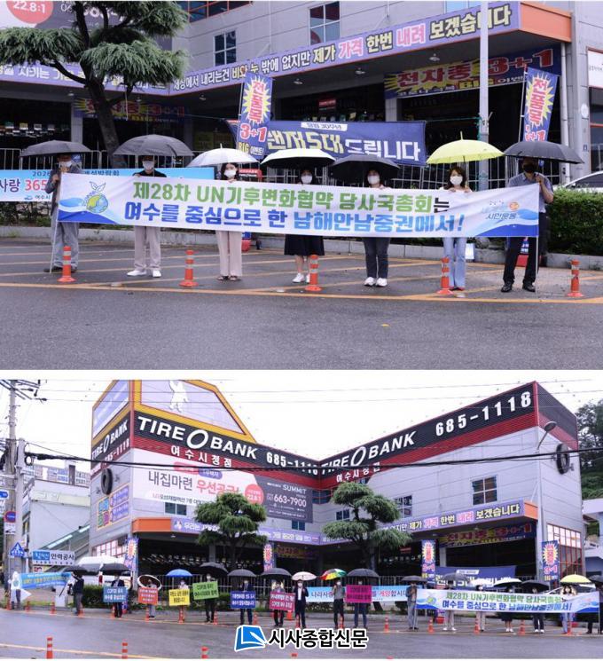[½Ã»çÁ¾ÇսŹ® = ¿À½ÂÅà ±âÀÚ] ¿©¼ö½Ã ±âÈÄ»ýŰú Á÷¿øµéÀÌ 6ÀÏ ¿ÀÀü 8½ÃºÎÅÍ ÇÑ ½Ã°£ µ¿¾È ½ÖºÀ»ç°Å¸®¿¡¼ 2023³â °³ÃÖ¿¹Á¤ÀÎ Á¦28Â÷ UN±âÈĺ¯ÈÇù¾à ´ç»ç±¹ÃÑȸ(COP28) ³²Çؾȳ²Áß±Ç À¯Ä¡¸¦ À§ÇØ °Å¸® Ä·ÆäÀÎÀ» ¹úÀ̰í ÀÖ´Ù.